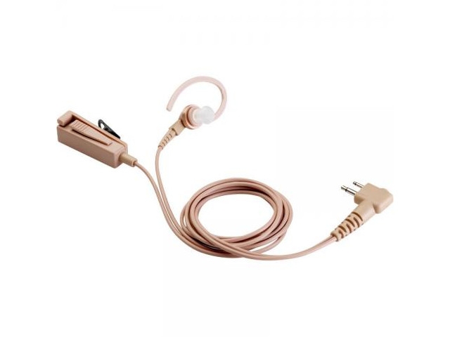 An extended-wear comfort earpiece that has a rubber eartip and clear, comfortable acoustic tube. Users hear transmissions clearly, while the clear tube provides a Discrete appearance. This is a beige comfort earpiece with microphone and Push-to-Talk Combined. (2-Wire)