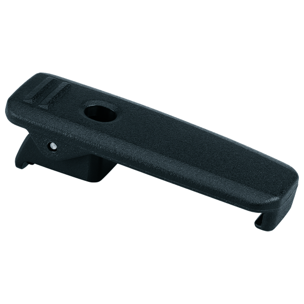 Spring action belt clip holds the radio in place on a belt.